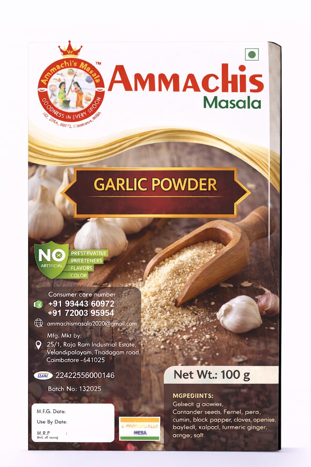 يُقدّم مسحوق الثوم من أماتشي نكهة ثوم نقية ومركزة، خالية من الإضافات والمواد الحافظة. مصنوع من فصوص ثوم مجففة طبيعيًا، يُضفي هذا المسحوق متعدد الاستخدامات مذاقًا أصيلًا على الكاري، والصلصات، والتتبيلات، والأطباق اليومية. عنصر أساسي في المطبخ، يمنح كل طبق دفء الثوم الطازج على مدار العام.