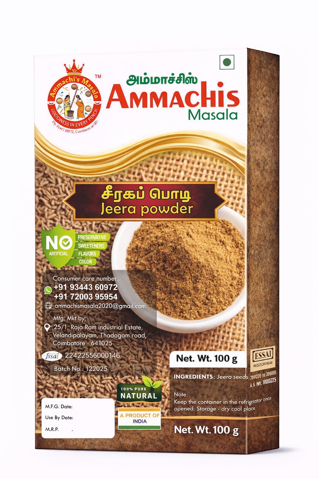 مسحوق الكمون، المصنوع بعناية فائقة في توابل أماتشي، يضفي نكهة أصيلة على مطبخك. مزيجنا المُعدّ طبيعيًا يجسد جوهر الكمون الفاخر الدافئ والترابي، المطحون بدقة متناهية للحصول على أقصى قدر من الرائحة والنكهة. يُعد هذا التابل متعدد الاستخدامات عنصرًا أساسيًا في المطبخ الهندي، فهو يرتقي بالكاري، والعدس، وأطباق الأرز، والوصفات التقليدية بفضل طابعه المميز. خالٍ من الإضافات والمعالجة الصناعية، يقدم مسحوق الكمون لدينا الجودة النقية التي يطلبها الطهاة المتميزون. ارتقِ بإبداعاتك في الطهي مع الدفء الحقيقي للكمون المصنوع طبيعيًا.