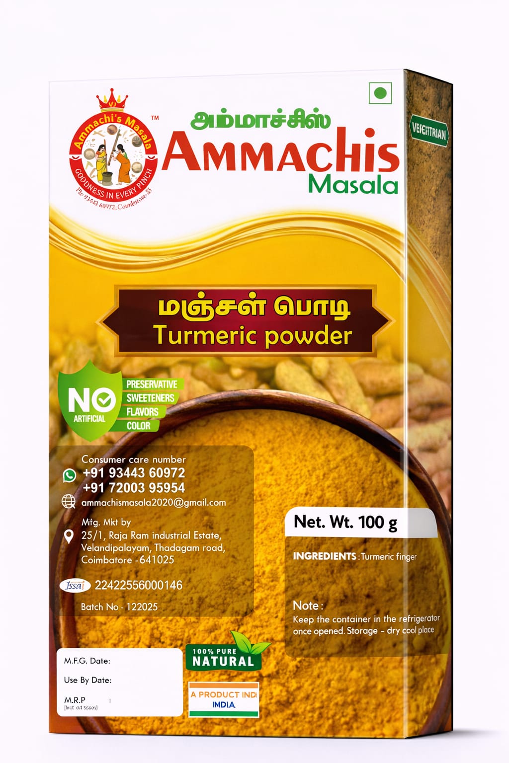 مسحوق الكركم ماسالا من أماتشي هو توابل فاخرة وطبيعية بالكامل، مستخلصة من أجود جذور الكركم. غني بالكركمين، يمنح هذا المسحوق الذهبي النكهة الدافئة الأصيلة والعمق الترابي الذي لا غنى عنه في المطبخ الهندي التقليدي. التزامنا بالنقاء يعني عدم استخدام أي إضافات أو مواد مالئة أو معالجة صناعية - فقط كركم نقي مطحون بإتقان. سواءً كنت ترغب في تحسين مذاق الكاري، أو الحليب الذهبي، أو تحضير مشروبات صحية، فإن ماسالا أماتشي تضمن لك استخدام توابل أصلية غير مغشوشة، تُحافظ على التقاليد الطهوية وتدعم أعلى معايير مطبخك.